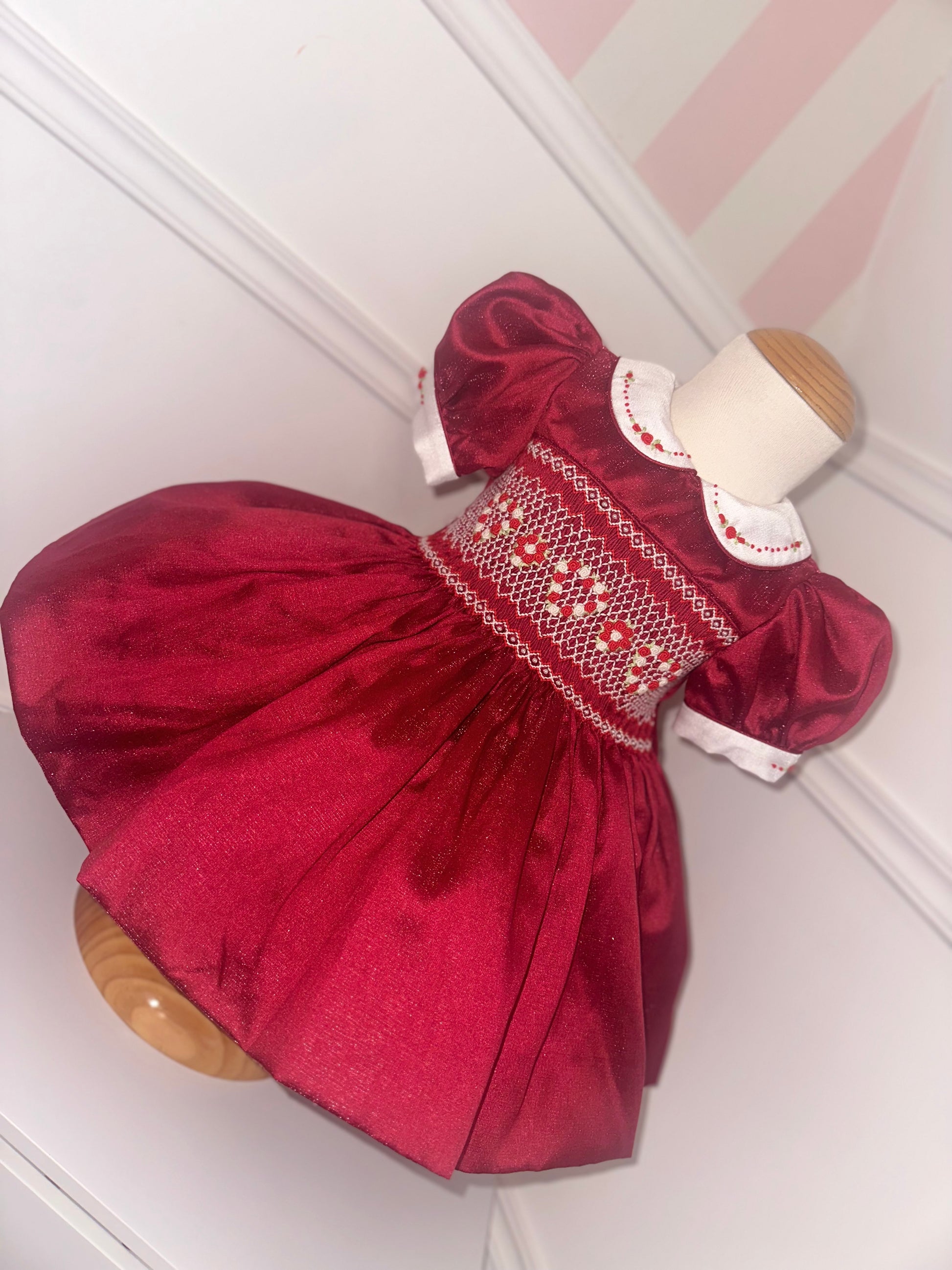 Sparkle Red Pearl Christmas Smock Dress